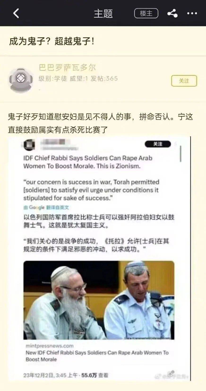当年的日本侵略军都知道掩盖一下,以色列国防军直接放到明面上说……(图源:微博@沙姆雄狮_EL)