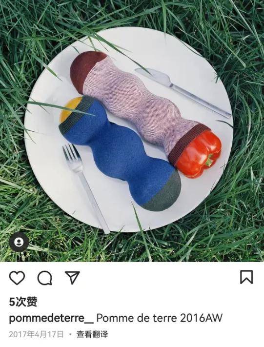 而且这场“邪典艺术”还延伸到了江南布衣旗下的另一个青少年品牌,比方脖子被腰带锁住的女装模特,比方餐盘上的不明形状物体。
