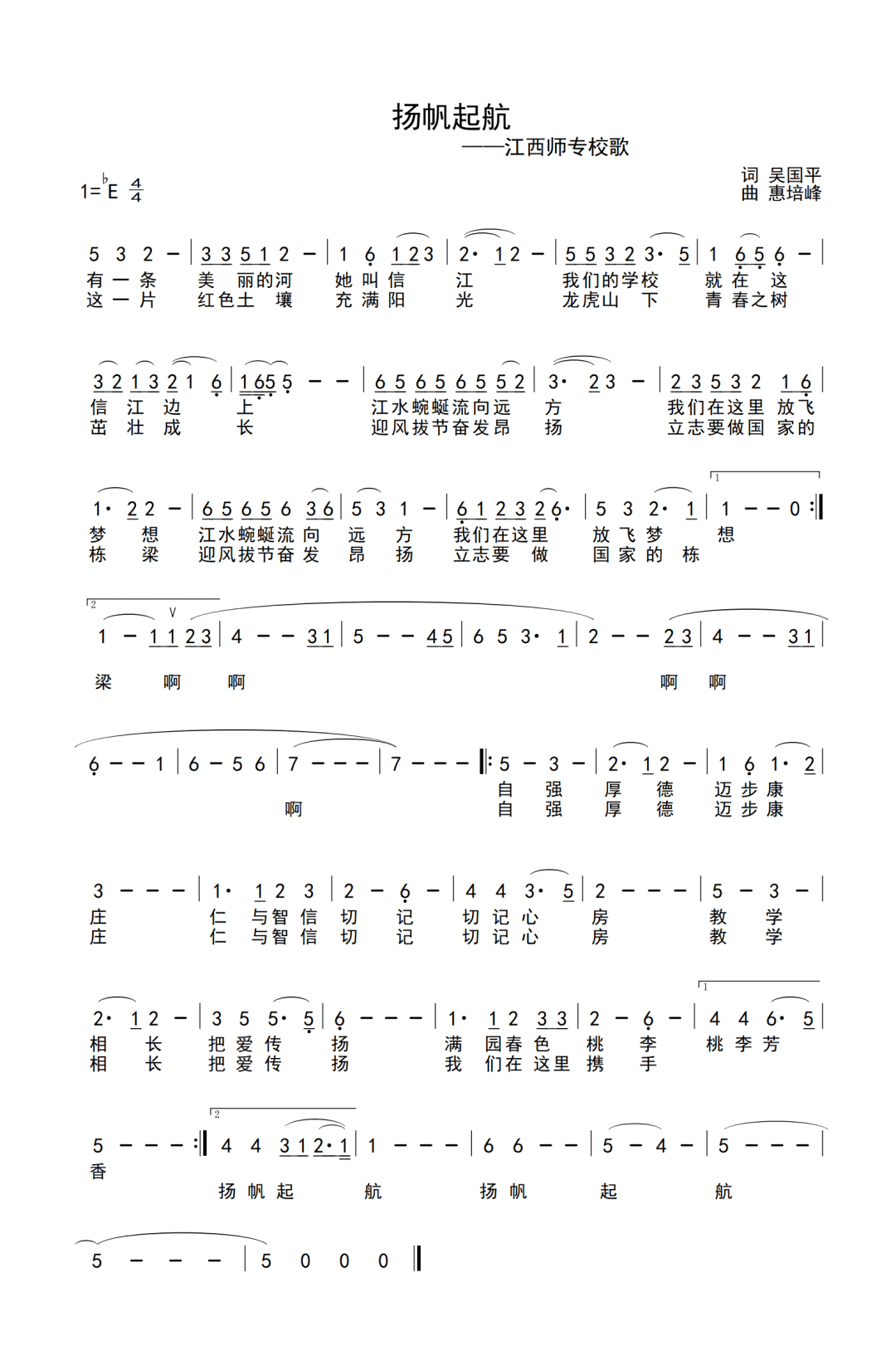 曲作者简介:惠培峰,男,党员,笔名、艺名:勤夫。国家一级作曲、合唱指挥,我国音乐家协会、江苏省音乐家协会会员,江苏音协手风琴协会理事兼考级高档评委。首要成果有:《春兰人之歌》获全国跨世纪合唱大赛金奖榜首。作为指挥,率团参加第七、八两届全国合唱艺术节,获二、三等奖。厦门警备区八连男声小合唱在全国业余比赛中取得榜首名等。