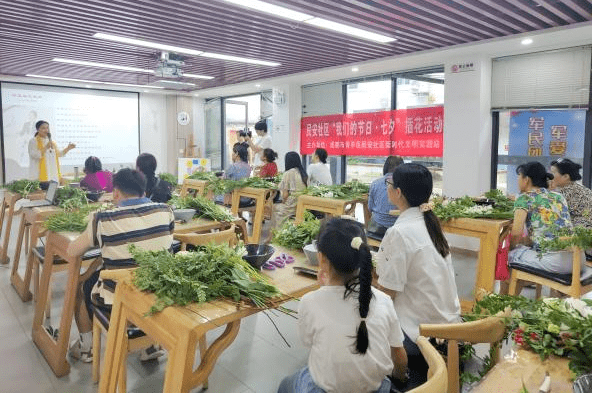 民安社区新时代文明实践站展开了“咱们的节日·七夕”插花活动。此次活动约请了成都市花艺师王沛聆教师到现场教育。
