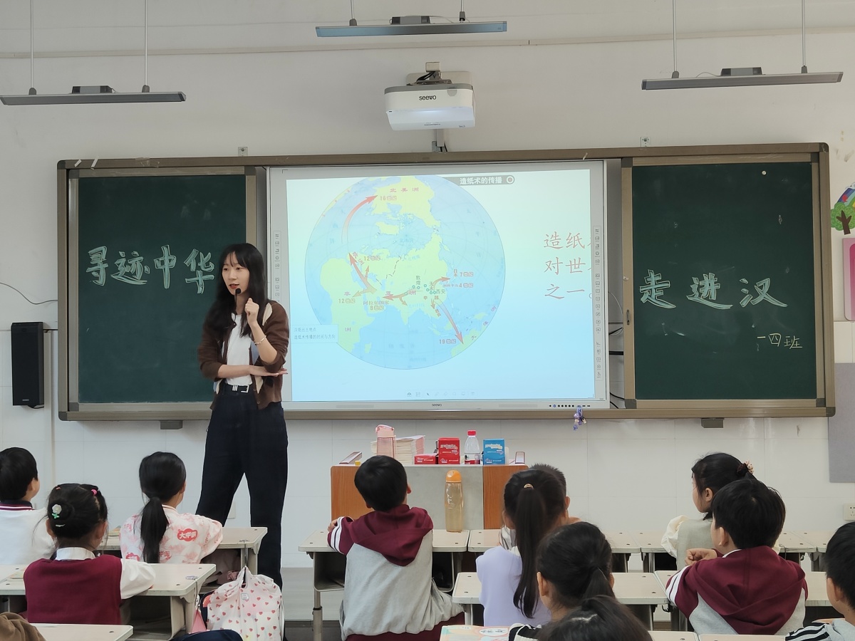 “寻迹中华——走进汉”前史背景和文明课程设计阶段,教师们活跃探索,清晰课程设计既是闭环的也是敞开的,闭环表现的是尊重史实,备课过程中的谨慎;敞开则表现在趣味性的互动、常识竞答等五光十色的讲堂方式,然后激起小学生的学史爱好。