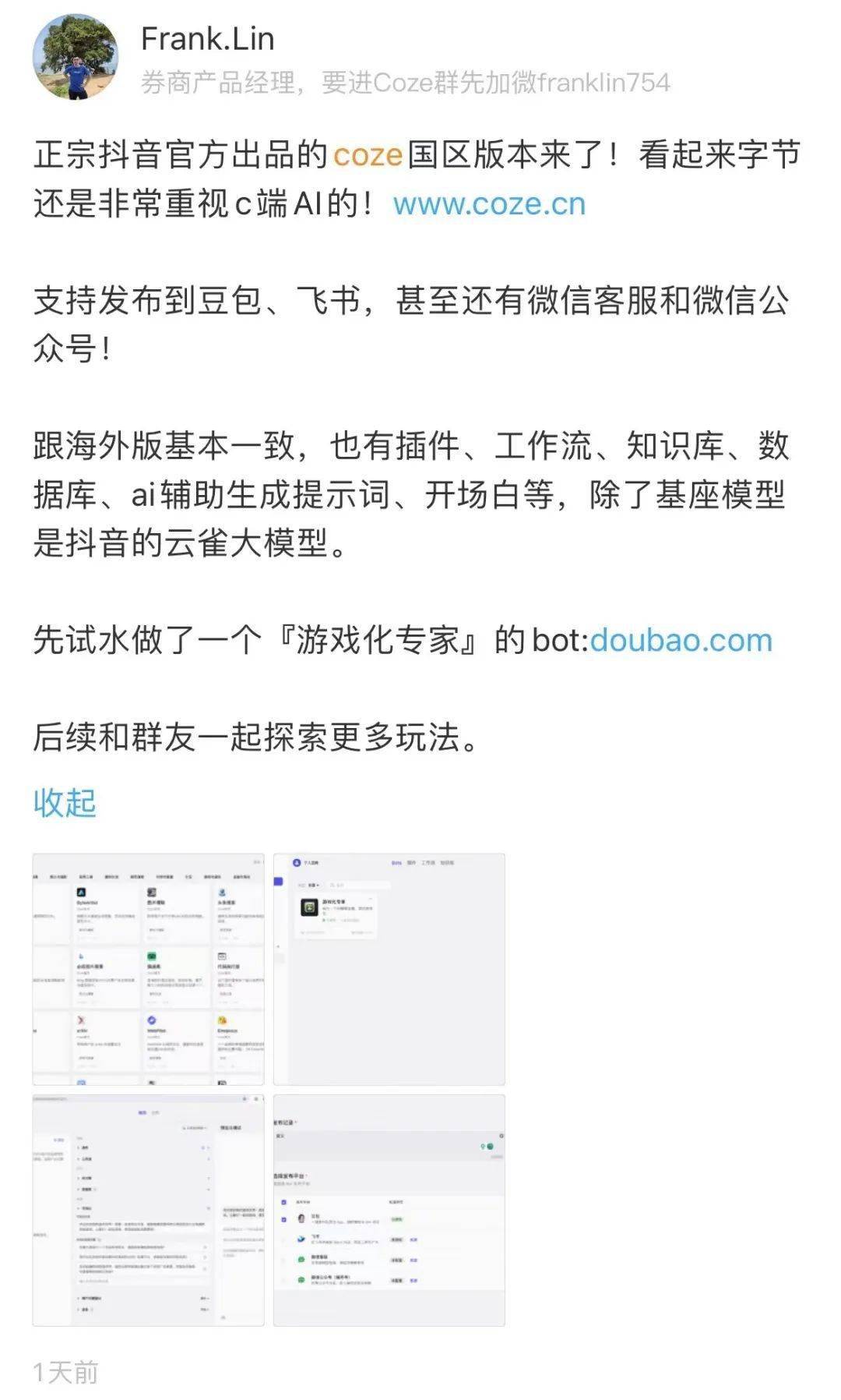 不管怎么说吧, Coze 这次在国内上线,仍是给国内的 AI 使用开发生态带来了些波涛。