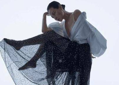 加上一点透视装,在模糊之中表现性感。透视装不免会给人一种放的开的感觉,尤其是关于37岁的谭卓而言,让人听起来感觉就不太好。可是眼见为实,这条黑色浪裙就十分性感,也不会给人很俗的感觉。与药神中的形象比较,同样是蕾丝透视元素,这条裙子上只用了一点点,还仅仅作为衔接元素,全体上并没有喧宾夺主,这才避免了庸俗,而有了高档的性感。