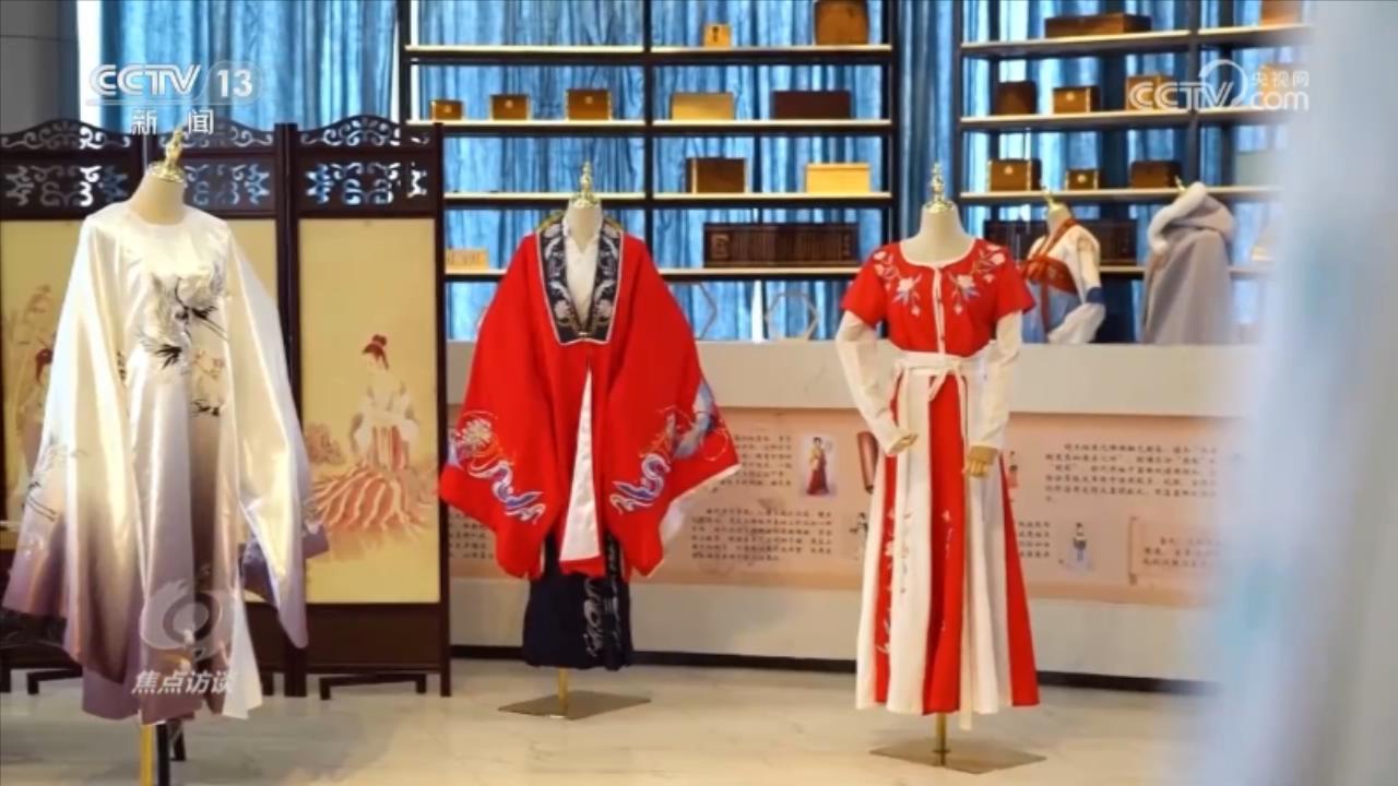 楚艳:“整个创作过程中,我们在款式、色彩,包括纹样的创新设计,借鉴了一些西式裁剪的结构工艺。国风雅韵的设计,非常充分地体现了中华文明的包容性,既要坚守我们的文化精神、美学精神,同时又相互借鉴、相互融合,能达到最终美美与共、和合共生的美学生态。”